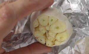- Izvadi iz rerne i ostavi da se malo ohladi. Zatim istisni pečene čenove iz ljuske u činiju.