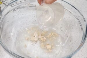 - U mlaku vodu dodaj kvasac i šećer, ostavi 5–10 minuta da zapeni.